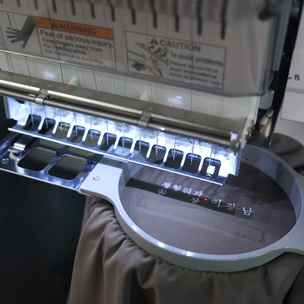 [옵션] 자수위치선택: 가슴주머니/입술주머니 위 / 자수실 색상 선택: 그레이 / 자수 스타일 선택: 2줄-나