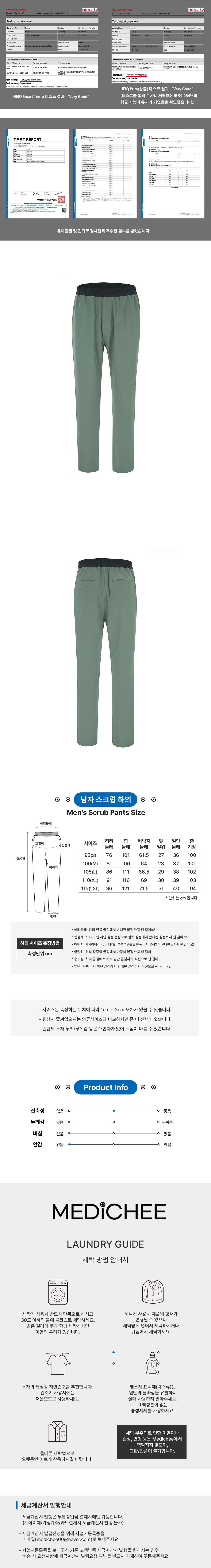 기본 사이즈 스크럽복 팬츠 제품으로 오랜연구 끝에 메디컬웨어로 최적화된 원단으로 제작 되었습니다.