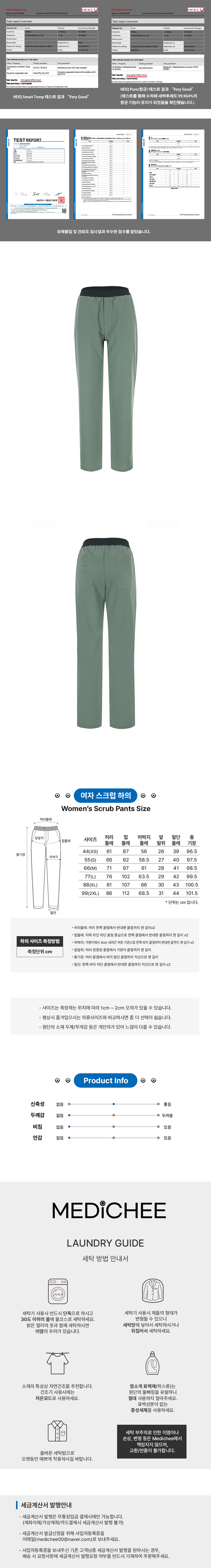 기본 사이즈 스크럽복 팬츠 제품으로 오랜연구 끝에 메디컬웨어로 최적화된 원단으로 제작 되었습니다.
