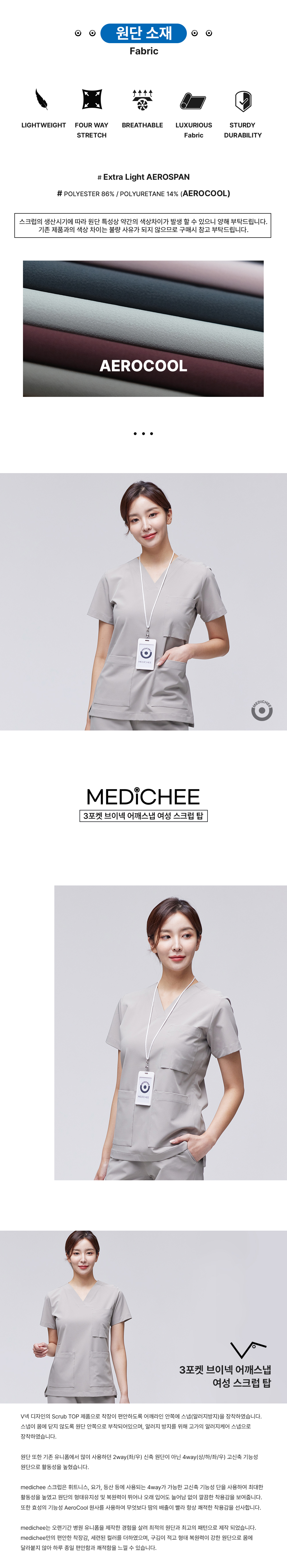 기본 사이즈 스크럽복으로, 오랜 연구 끝에 의료 환경에 최적화된 원단을 사용하여 제작되었습니다. 원단은 MEDICHEE Extra Light AEROSPAN 기능성 원단을 적용했으며, 86% Polyester + 14% Polyurethane 구성으로 우수한 신축성을 자랑해 장시간 착용해도 부담이 없습니다.
