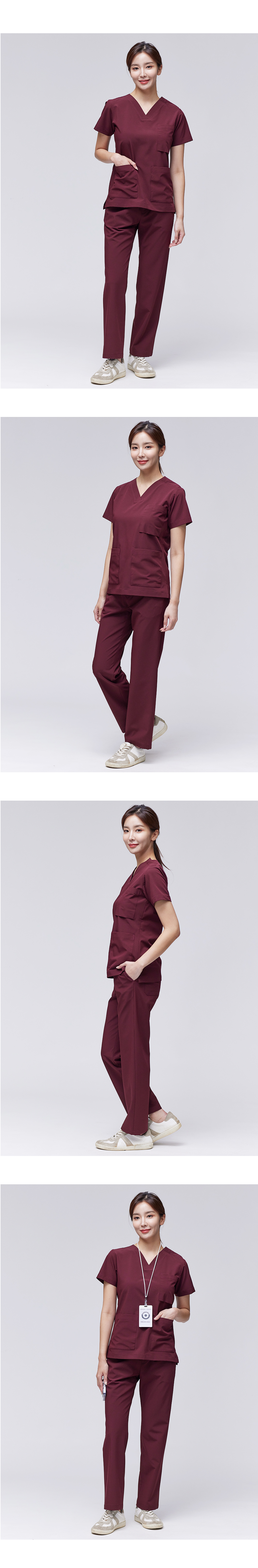 3포켓 브이넥 스크럽복 여성 상의 WINE