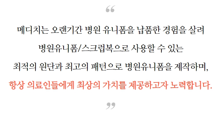 메디컬웨어 브랜드 메디치는 의료인에게 최상의 가치를 제공하고자 노력합니다!