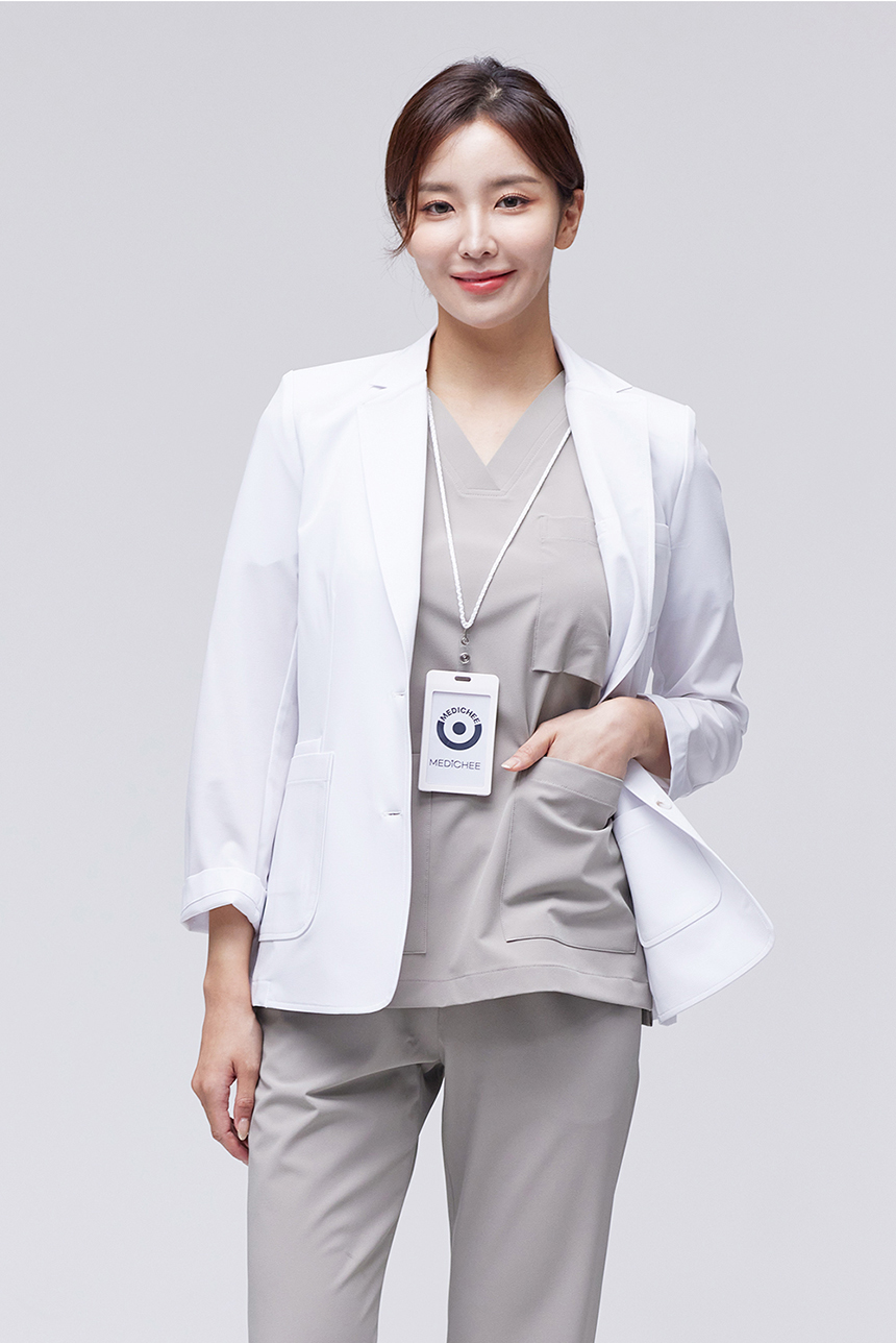 MEDICHEE Extra Light AEROSPAN 기능성 원단을 적용했으며, 의료 환경에 최적화된 소재로 제작되었습니다. 86% Polyester + 14% Polyurethane 구성으로 뛰어난 신축성으로 항상 쾌적한 착용감을 제공합니다.
