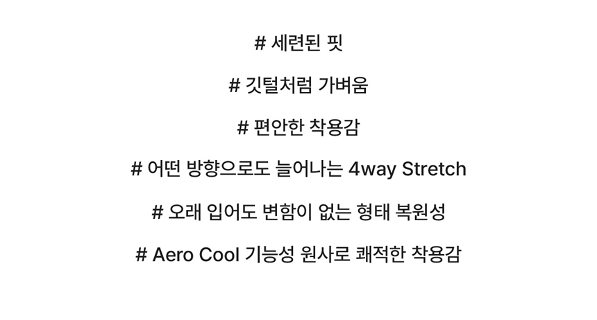 세탁 후에도 원단 형태가 잘 유지되며, 장시간 착용에도 불편함 없이 최상의 컨디션을 유지할 수 있도록 설계되었습니다.
